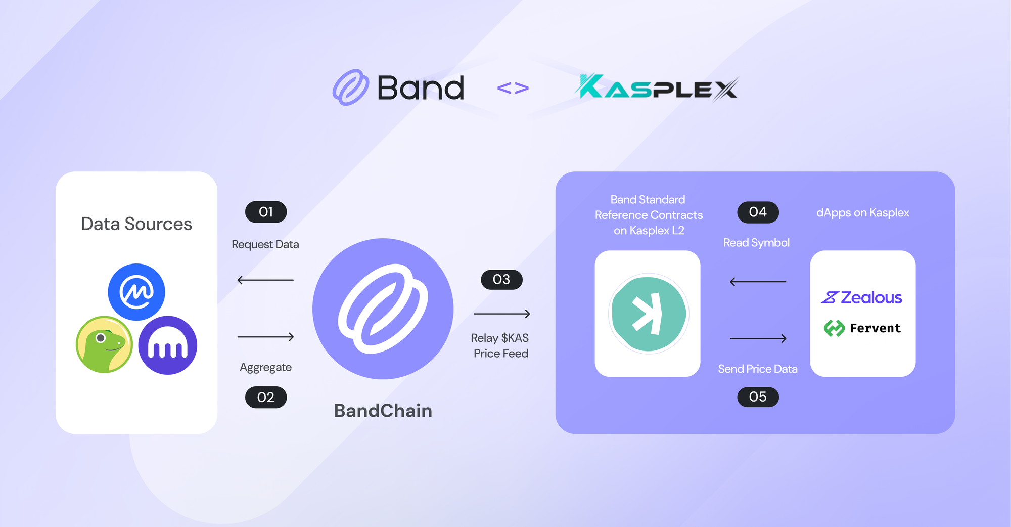 - Data Relay: The verified data feed is relayed from BandChain to Kasplex smart contracts via Band's Standard Dataset.