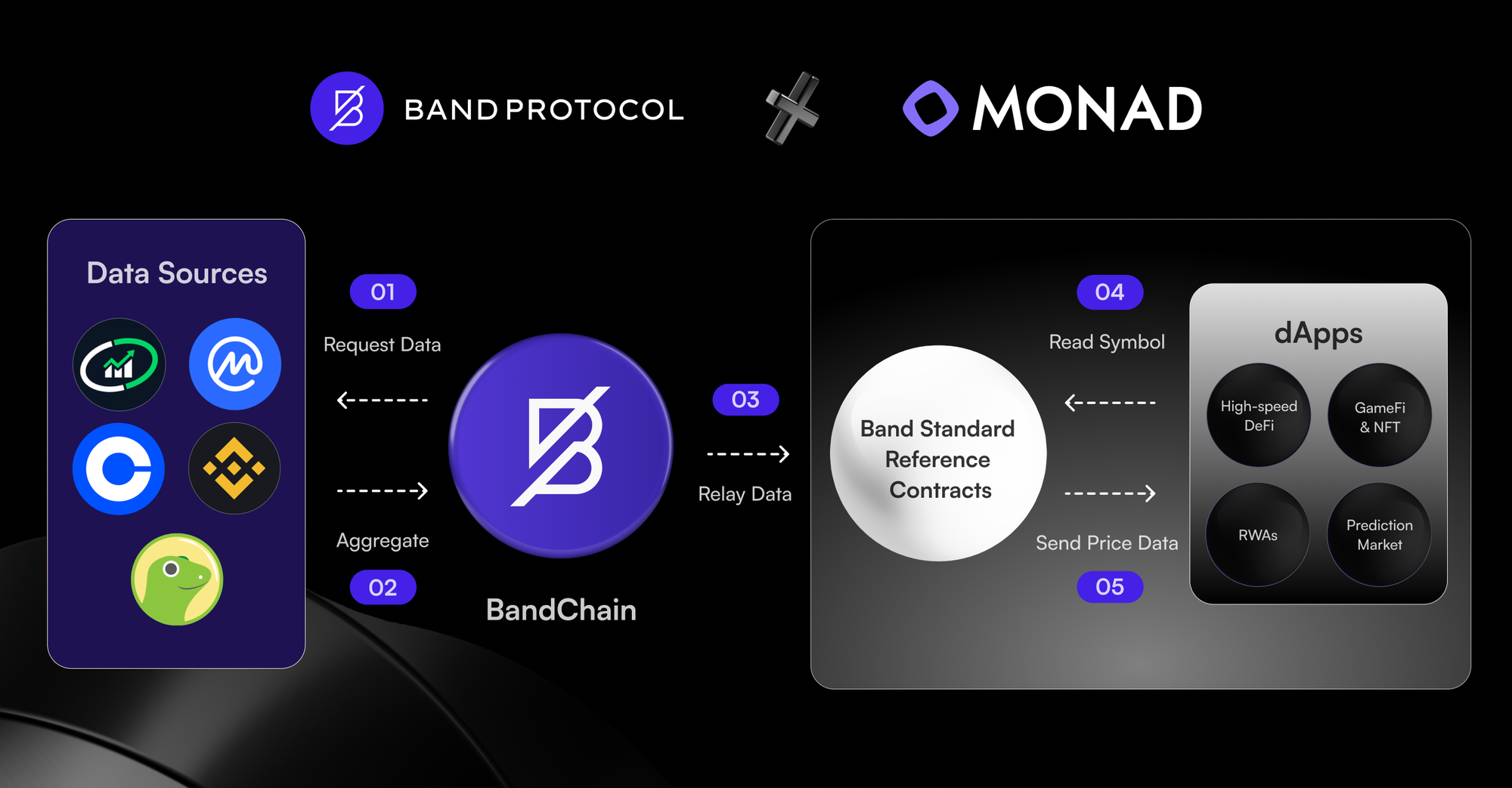 With this integration, Band Protocol enhances data flow and accessibility on Monad, unlocking all possibilities for Web3, DeFi, GameFi, and Real World Assets (RWA).