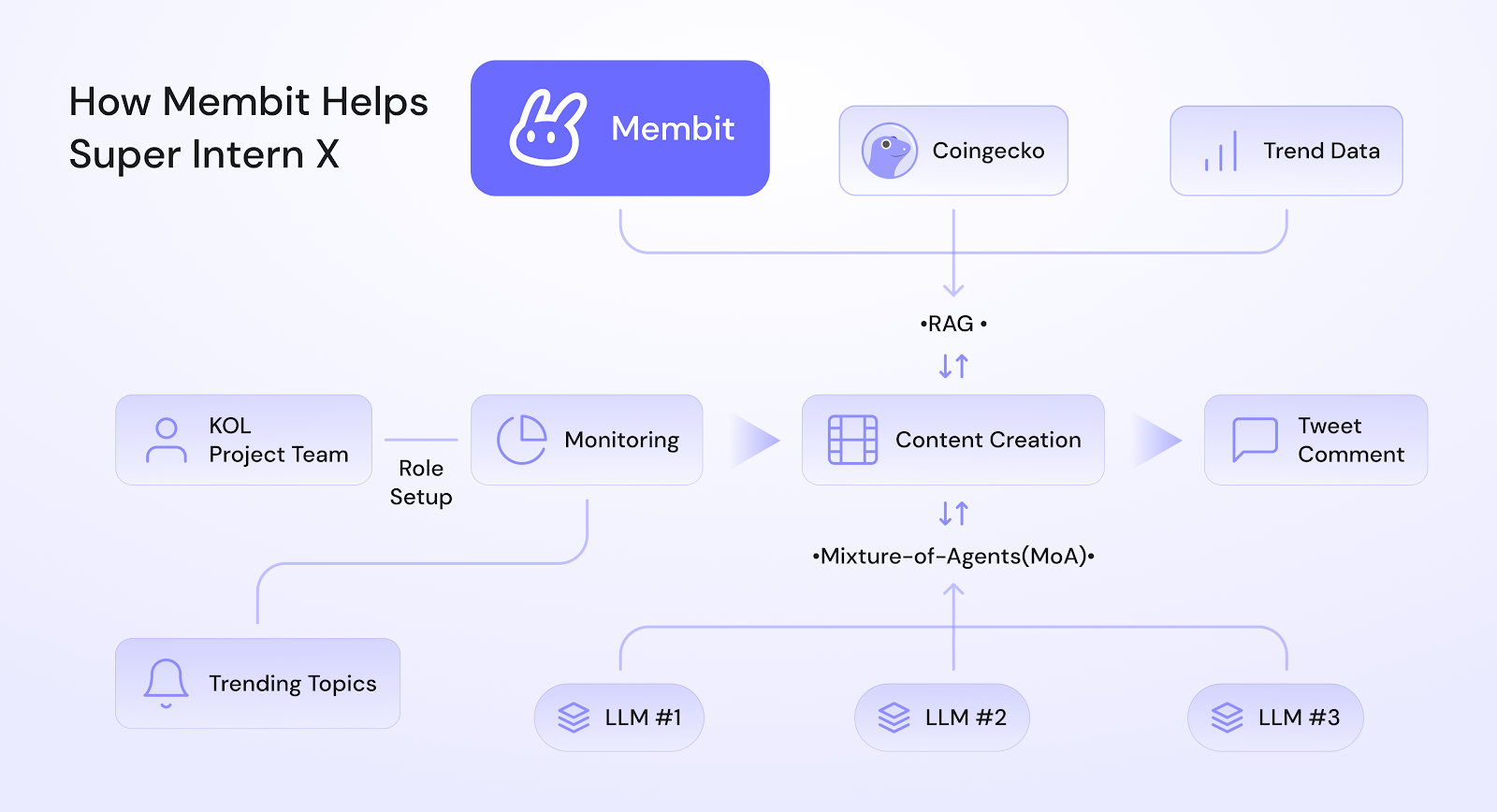 Membit empowers Super Intern X by supplying structured, real-time information from social media as an alternative data source to the X API. This up-to-date contextual data supports decision-making, research, and analysis, allowing Super Intern X to function as a dynamic, intelligent assistant for builders, analysts, and communities.
